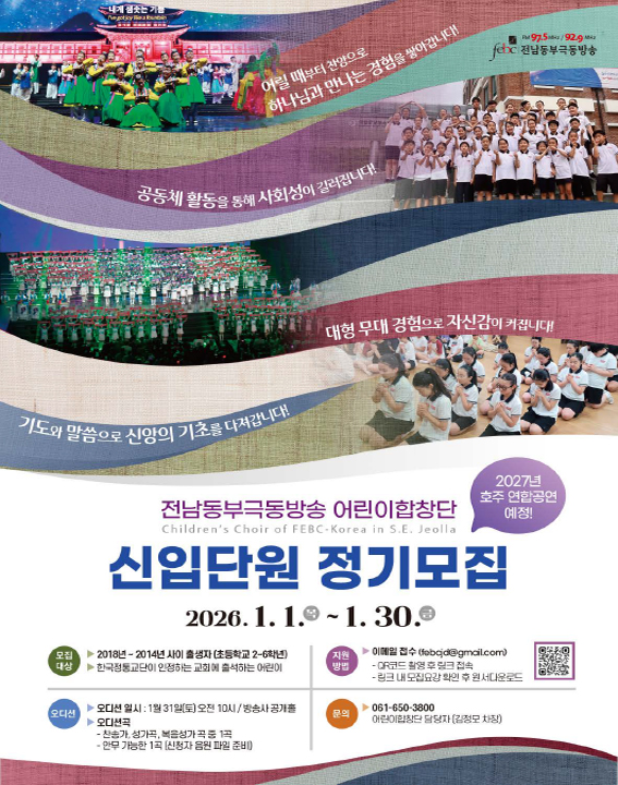 2026 광주극동방송 어린이합창단 신입단원 모집