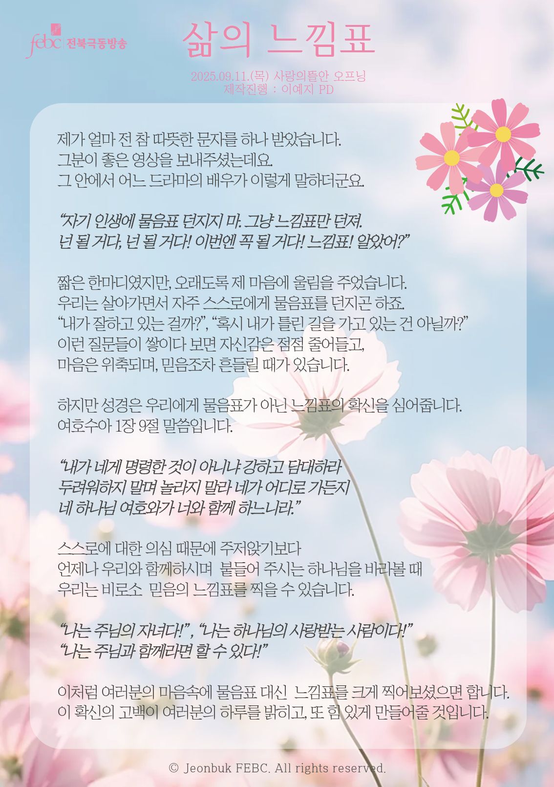 [전북] 25.09.11.(목) 사랑의뜰안 오프닝 "삶의 느낌표"