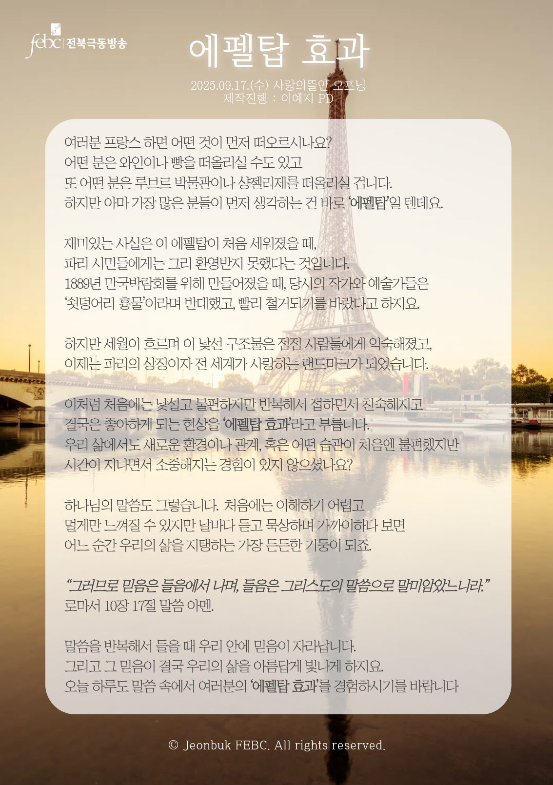 [전북] 25.09.17.(수) 사랑의뜰안 오프닝 "에펠탑 효과"