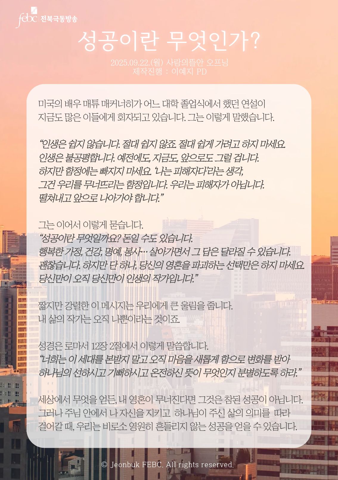[전북] 25.09.22.(월) 사랑의뜰안 오프닝 "성공이란 무엇인가?"