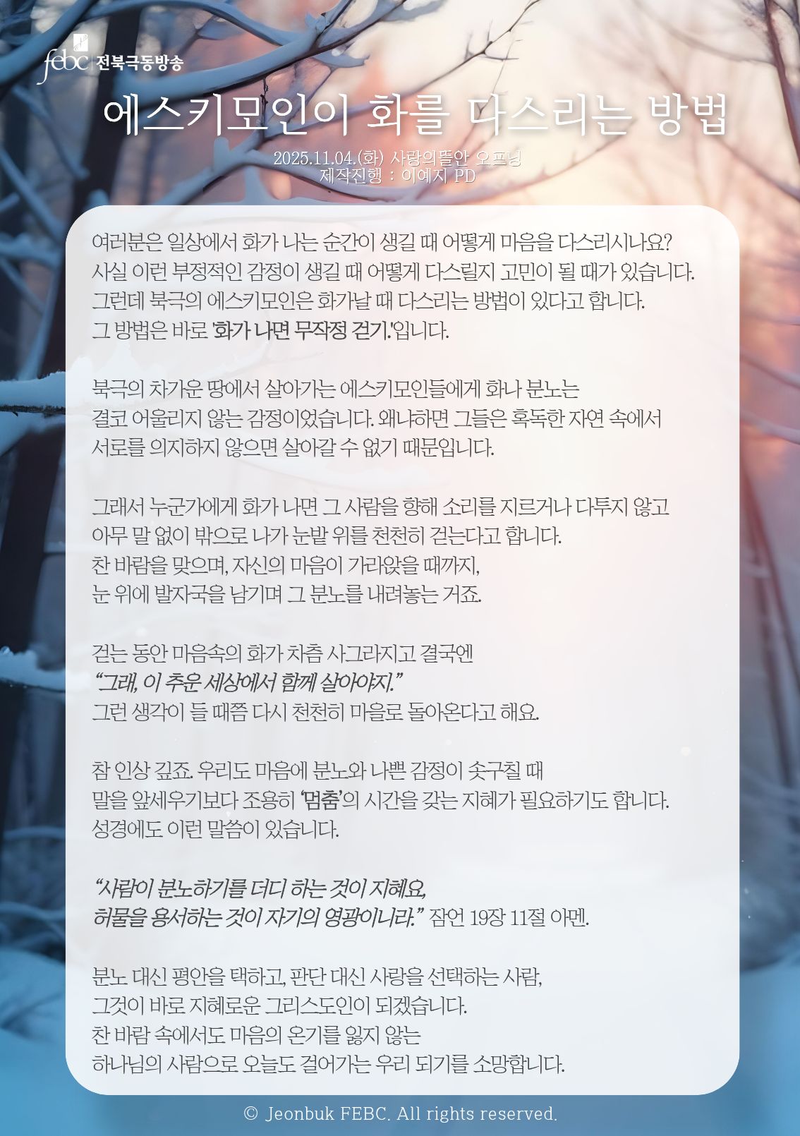 [전북] 25.11.04.(화) 사랑의뜰안 오프닝 "에스키모인이 화를 다스리는 방법"