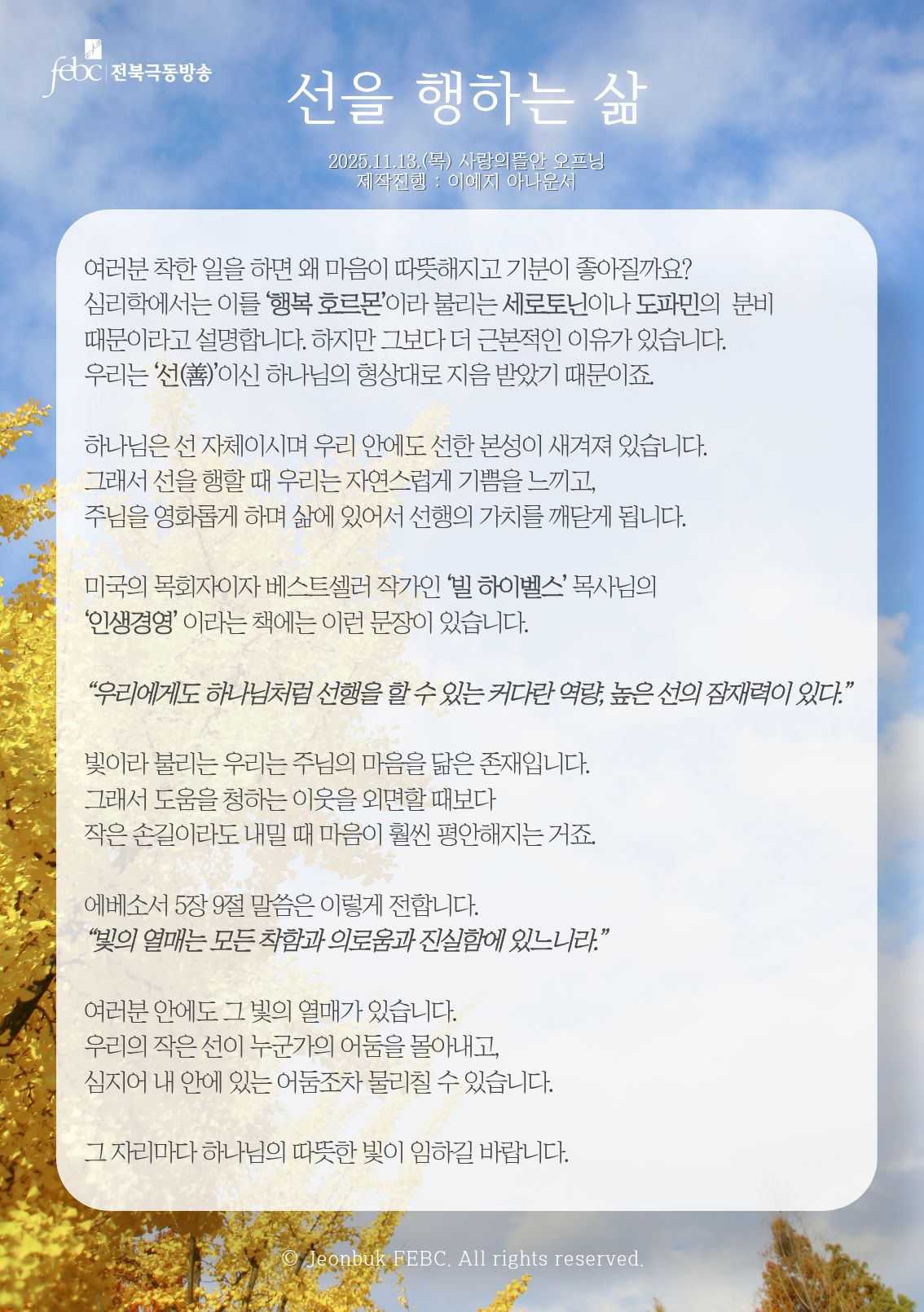 [전북] 25.11.13.(목) 사랑의뜰안 오프닝 "선을 행하는 삶"