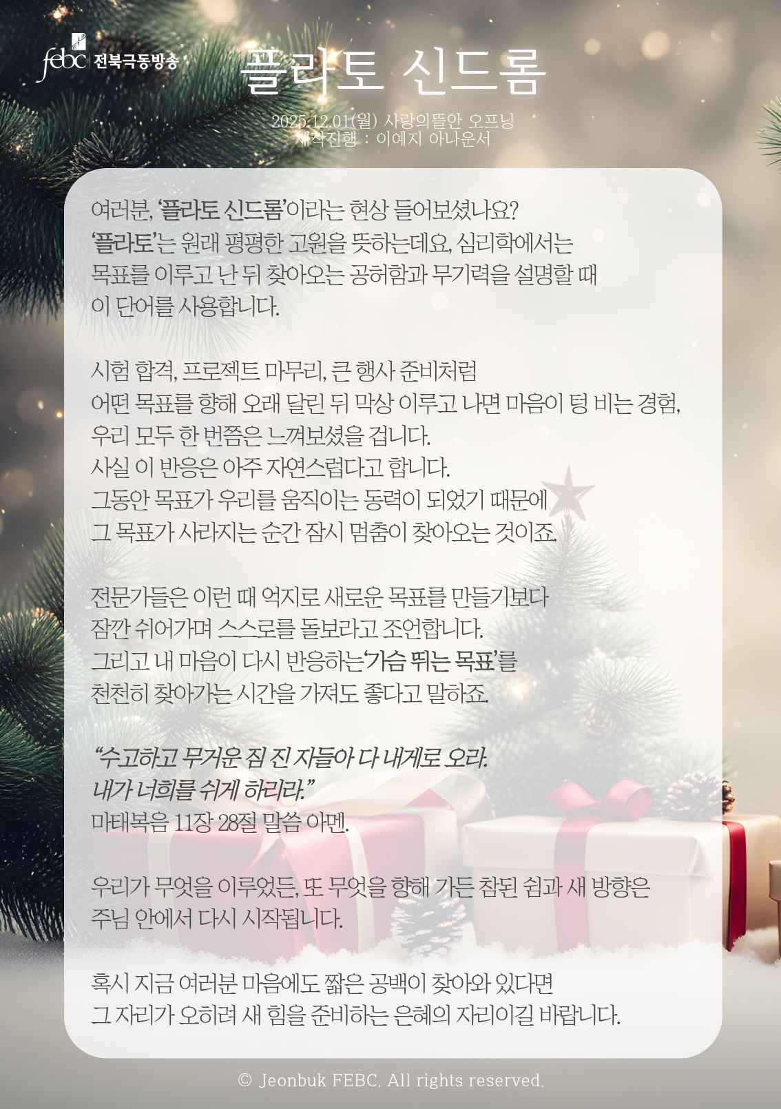[전북] 25.12.01.(월) 사랑의뜰안 오프닝 "플라토 신드롬"