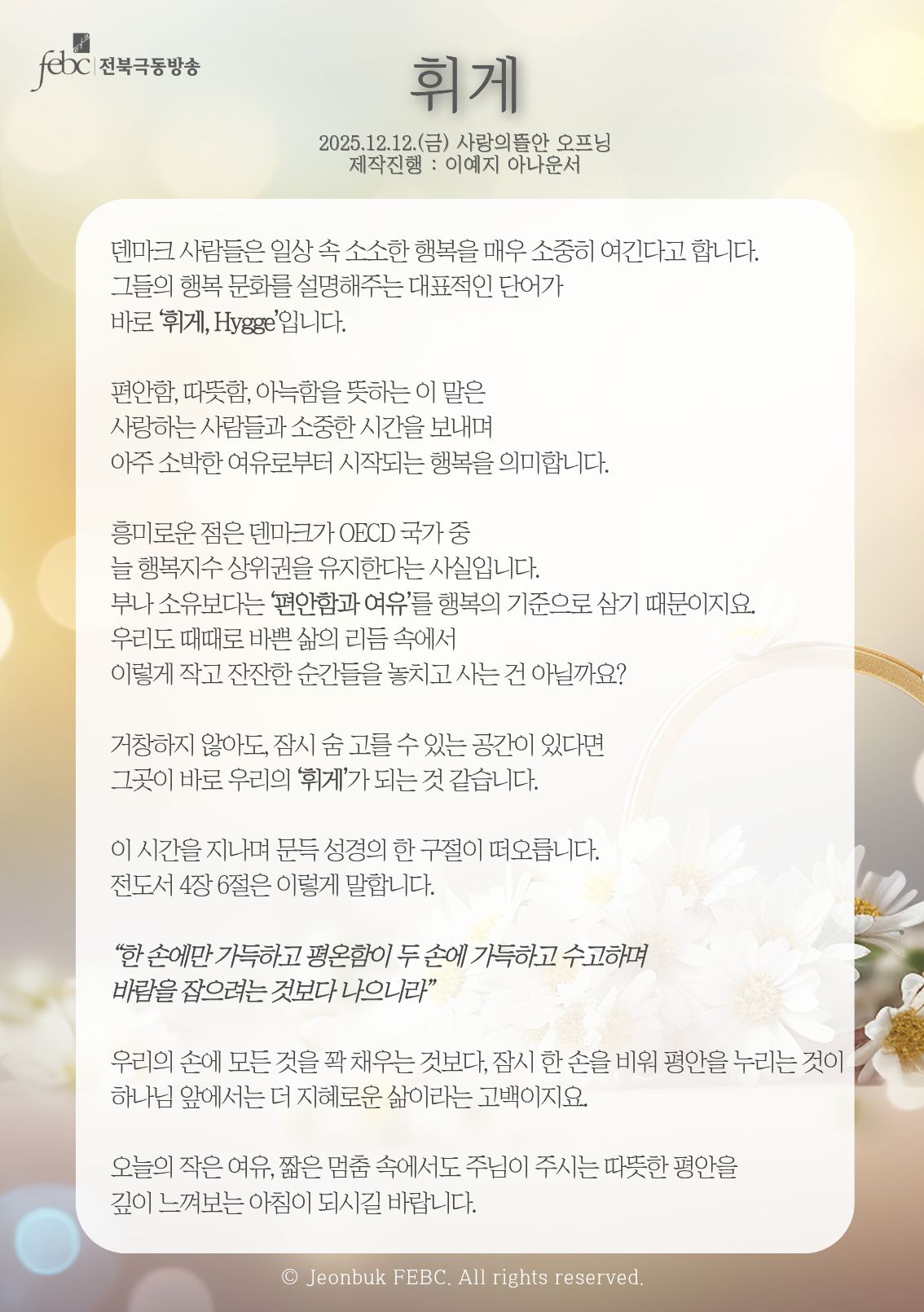 [전북] 25.12.12.(금) 사랑의뜰안 오프닝 "휘게"