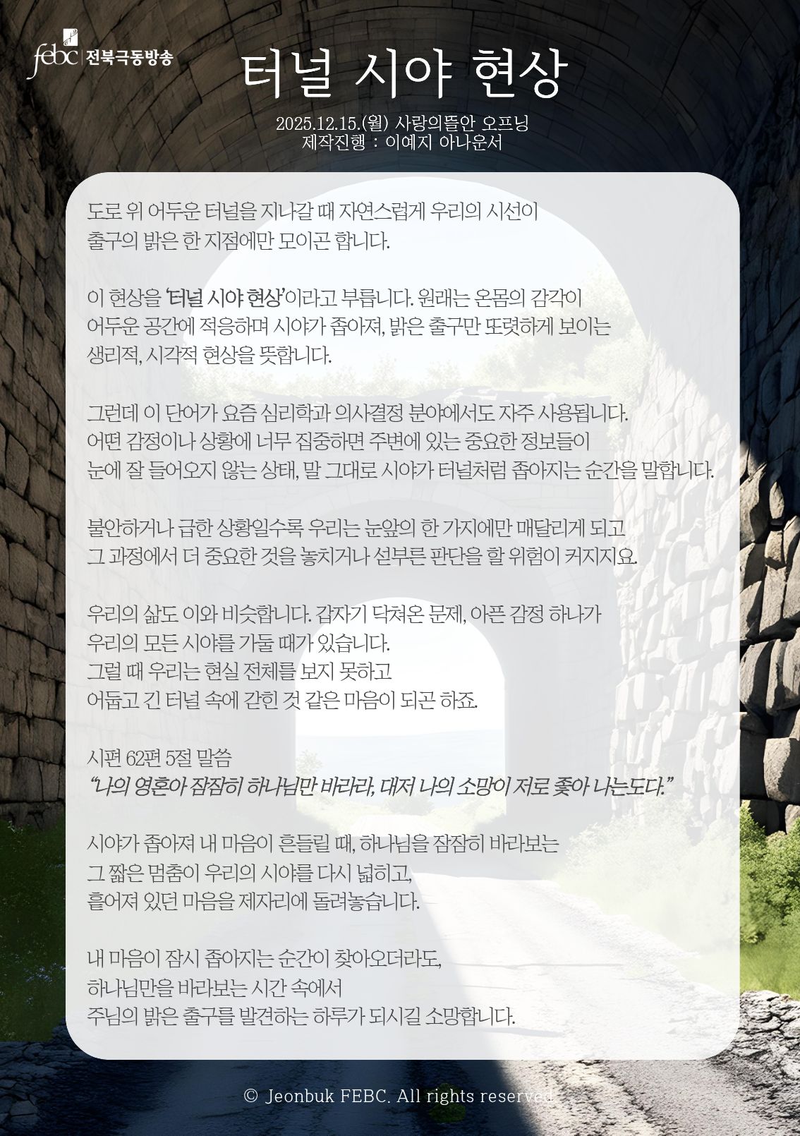 [전북] 25.12.15.(월) 사랑의뜰안 오프닝 "터널 시야 현상"