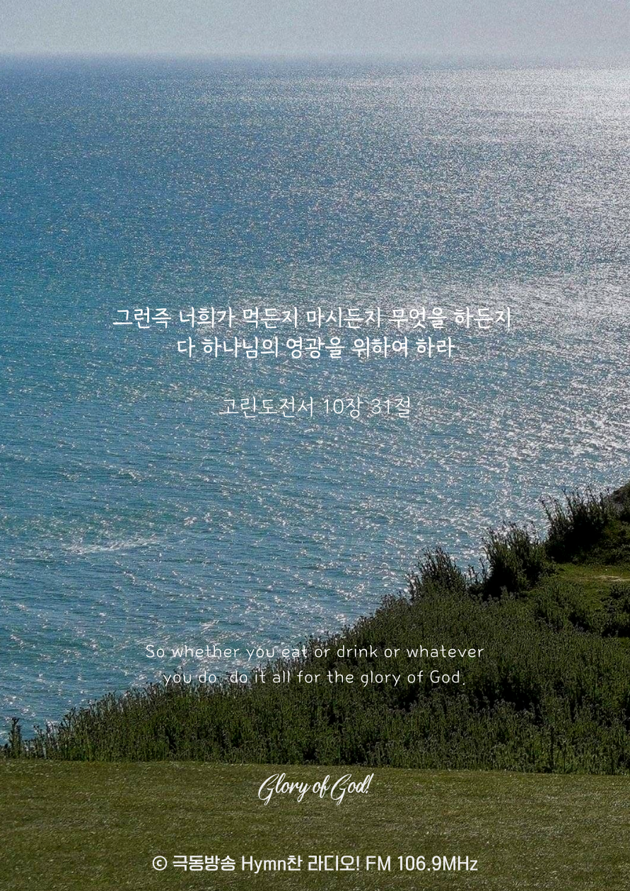 고린도전서 10장 31절 말씀입니다. 아멘!