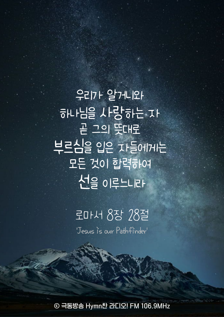 우리가 알거니와 하나님을 사랑하는 자 곧 그의 뜻대로 부르심을 입은 자들에게는 모든 것이 합력하여 선을 이루느니라
