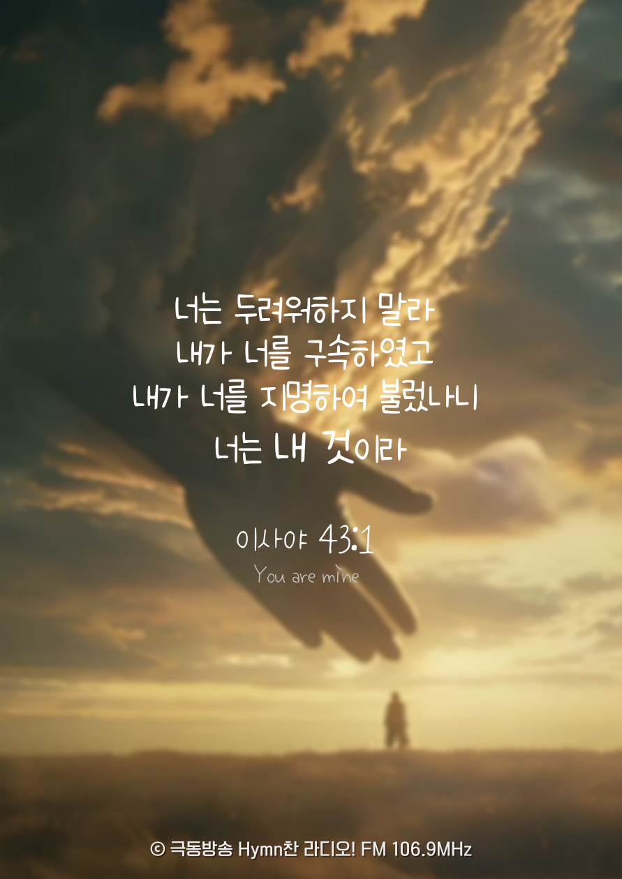 야곱아 너를 창조하신 여호와께서 지금 말씀하시느니라 이스라엘아 너를 지으신 이가 말씀하시느니라 너는 두려워하지 말라 내가 너를 구속하였고 내가 너를 지명하여 불렀나니 너는 내 것이라