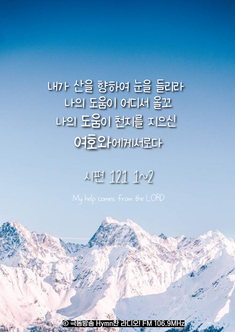 내가 산을 향하여 눈을 들리라 나의 도움이 어디서 올꼬