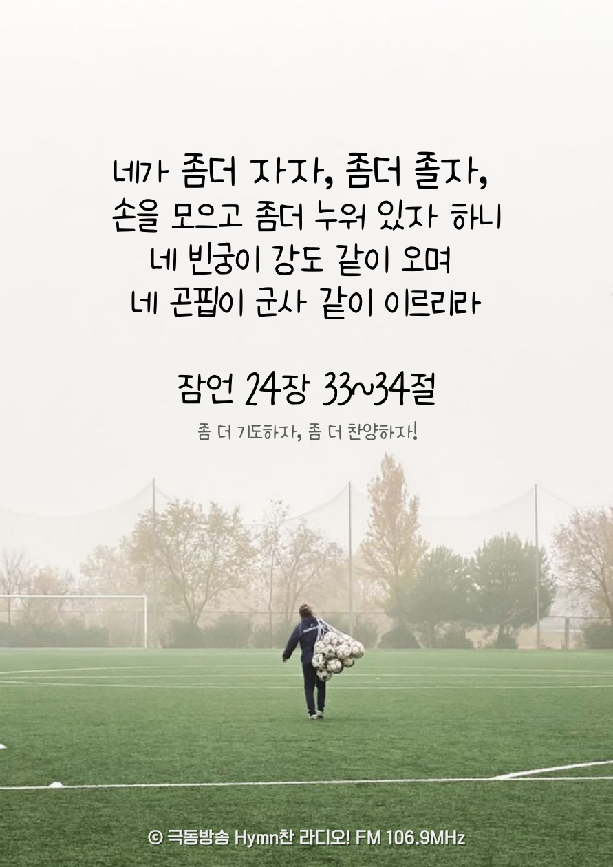 우리의 신앙은 더더욱 그럴 거에요. 조금 더 눕자, 조금 더 자자, 가 아니라, 조금 더 기도하자, 조금 더 말씀 읽자, 조금 더 노력해서 선을 선택하자. 가 되었으면 좋겠습니다.