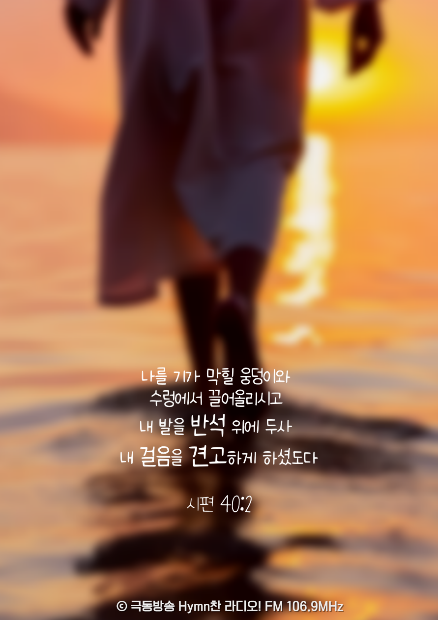 나를 기가 막힐 웅덩이와 수렁에서 끌어올리시고 내 발을 (반석) 위에 두사 내 걸음을 견고하게 하셨도다