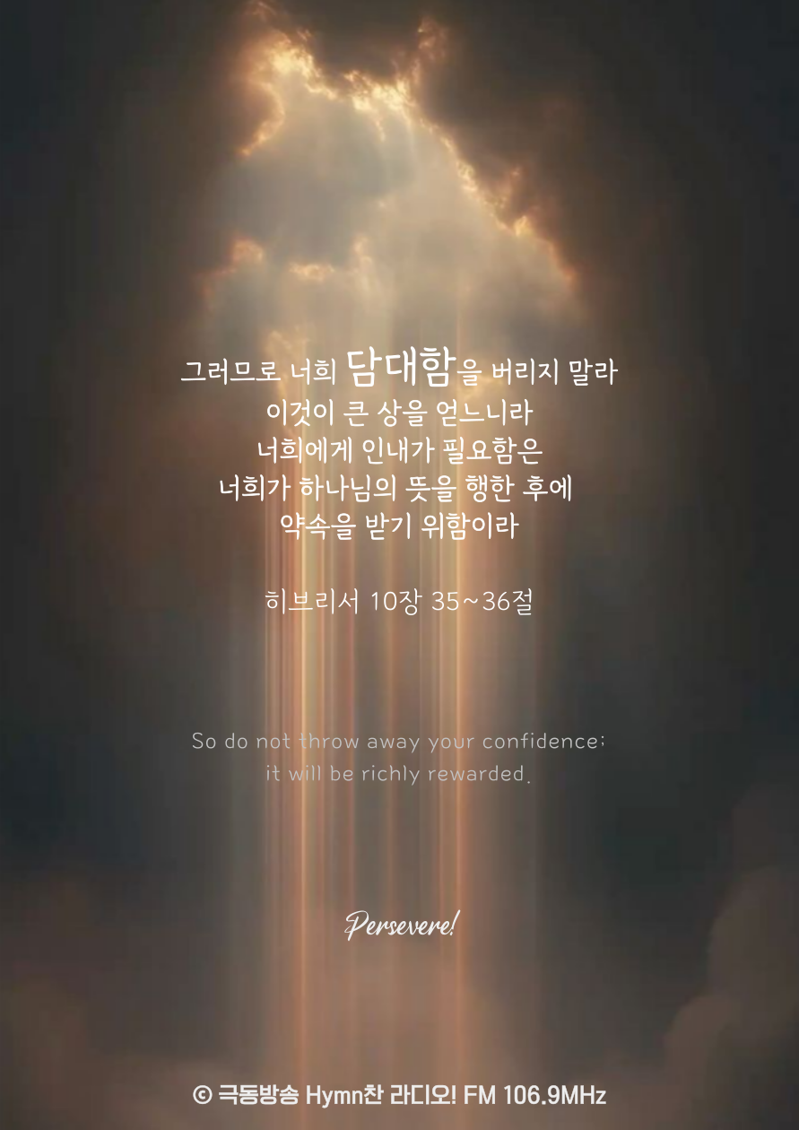 히브리서 10장 35~36절 말씀입니다. 아멘!